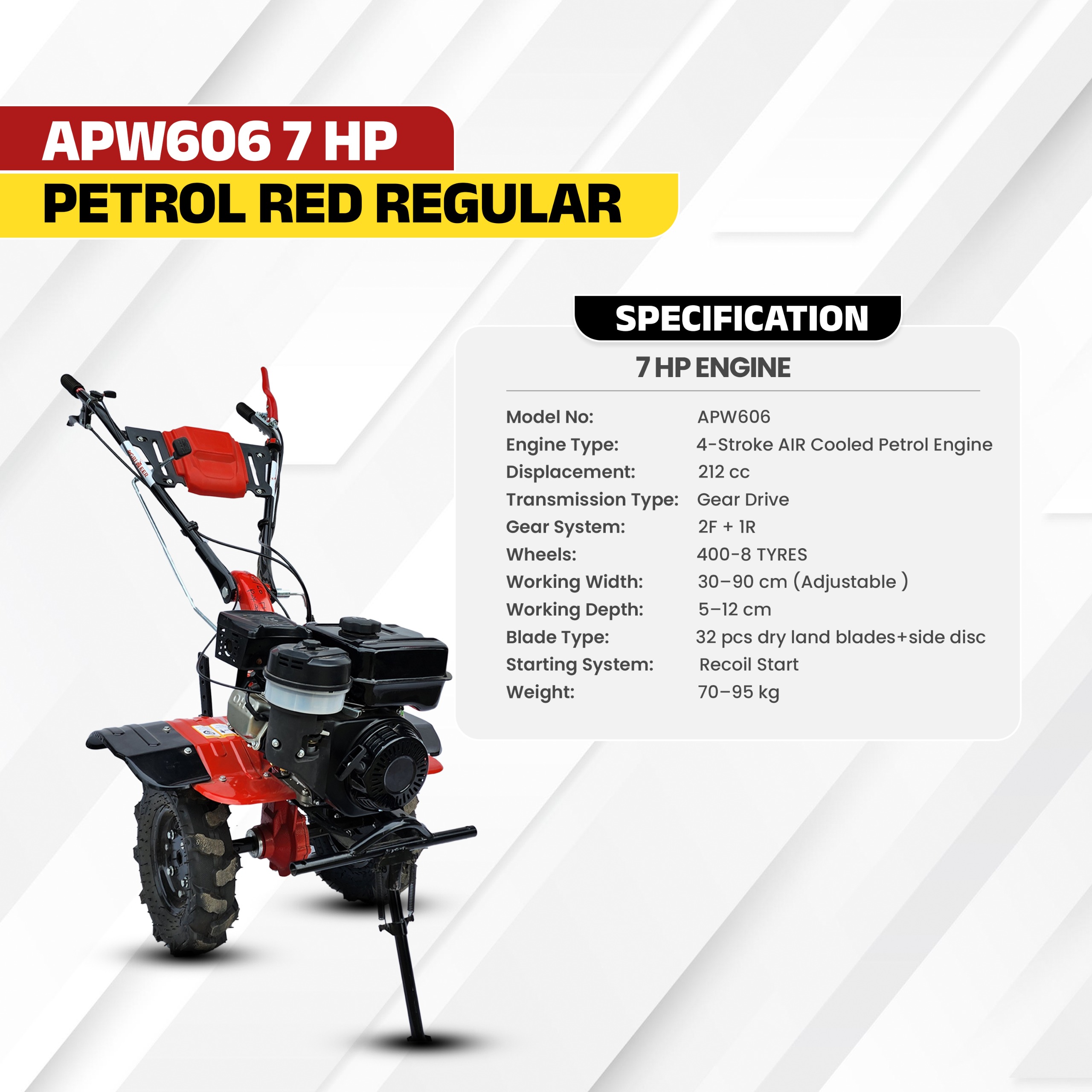 The 7 HP Power Weeder is a powerful and versatile machine designed to simplify farming and gardening tasks. Powered by a robust 7-horsepower petrol engine, this weeder is ideal for inter-cultivation, soil preparation, and weed removal in small to medium-sized farms.