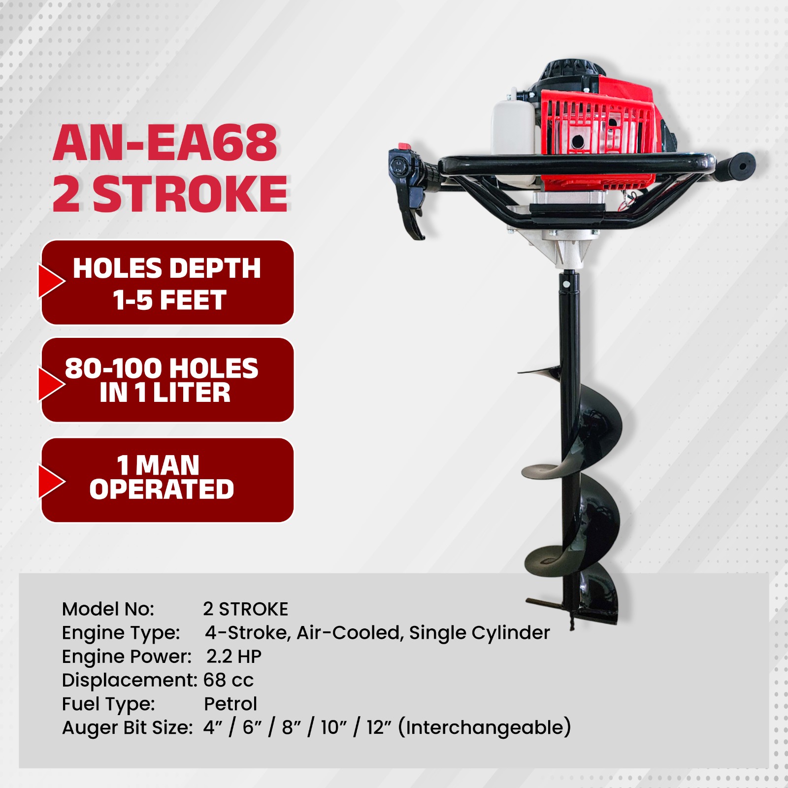 Agrineer AE-63 Earth Auger with Bit | 63 cc 2 Stroke Petrol Engine